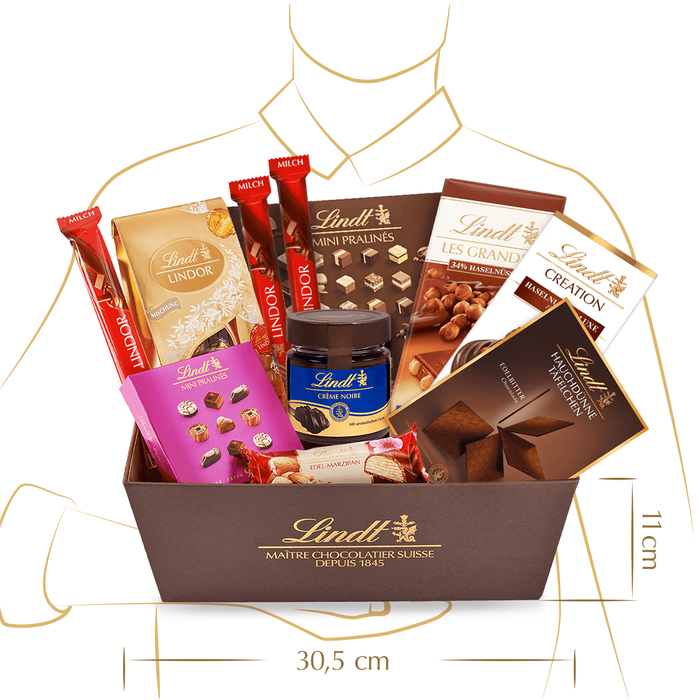Den Tag süß beginnen, den Tag süß beenden – und zwischendurch viele süße Genussmomente erleben oder verschenken. Unser großes Jahresartikel Set enthält alle Lindt-Produkte, die ein Schoko-Fan stets im Haus haben muss. Das Set eignet sich zudem wunderbar für ein Schokoladen-Geschenk – zum Beispiel zum Geburtstag. Achtung: Die Farbe und die Botschaft der Mini Pralinés kann variieren.